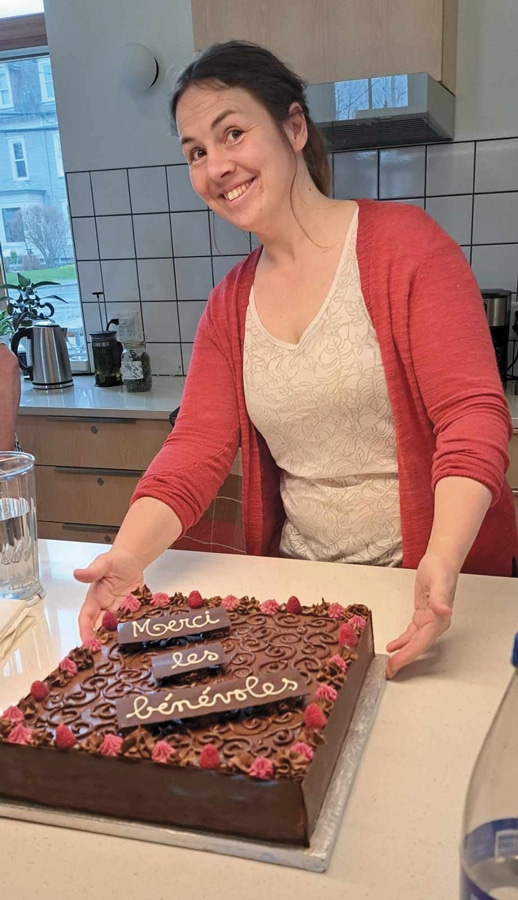 In those early days, Chantal pitched in where she could. And once her eldest was enrolled in the Jardin d’enfants daycare, she volunteered and eventually joined the board. By pitching-in she met new friends, colleagues, and families. These people were, like her, in need of a community and mutual support. During the height of the COVID-19 pandemic, now with two young children, Chantal advocated for baby drop-in hours at the Centre Action Bénévole (CAB). Her advocacy was motivated by her own experience with isolation as a parent with small children. “Since I suffered from it, I didn’t want others to suffer [too]”.