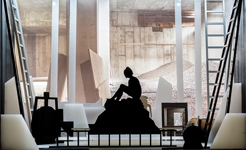 Geneviève Roy, La jeune fille au rocher, Diorama (boîtier rétroéclairé), 2023 ; technique mixte, 30 x 45 x 23 cm
