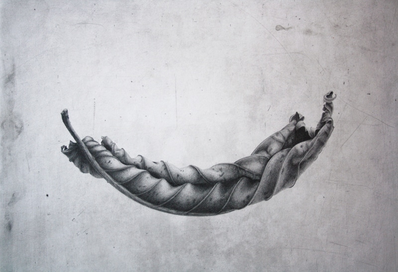 Quiescence, 2023, dessin au graphite sur impression à l’eau forte, 29 x 37 cm