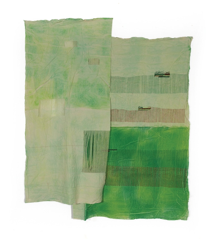 Asma Ben Aïssa, Paysages,182 x 149 cm. Teinture et broderie sur toile, 2024. Photo : Fondation Montresso