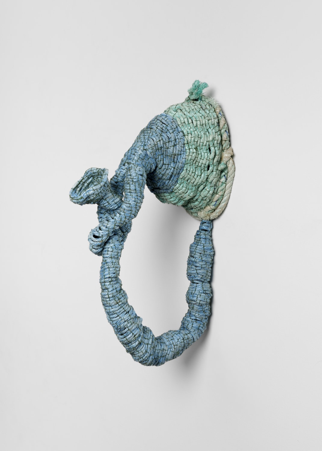 Sandra Smirle, Snag, 2024, corde marine récupérée, fil de lin et corde de panier, 50,8×20,32×33,02 cm