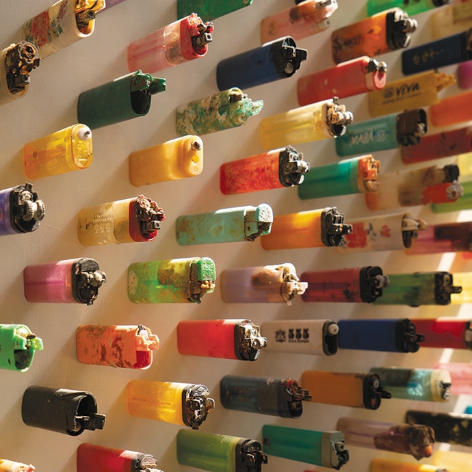 Nils Fluck, A Lighter Touch, 88,3 x 102,8 cm. Technique mixte et débris marins sur panneau, 2022