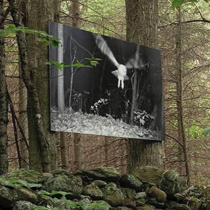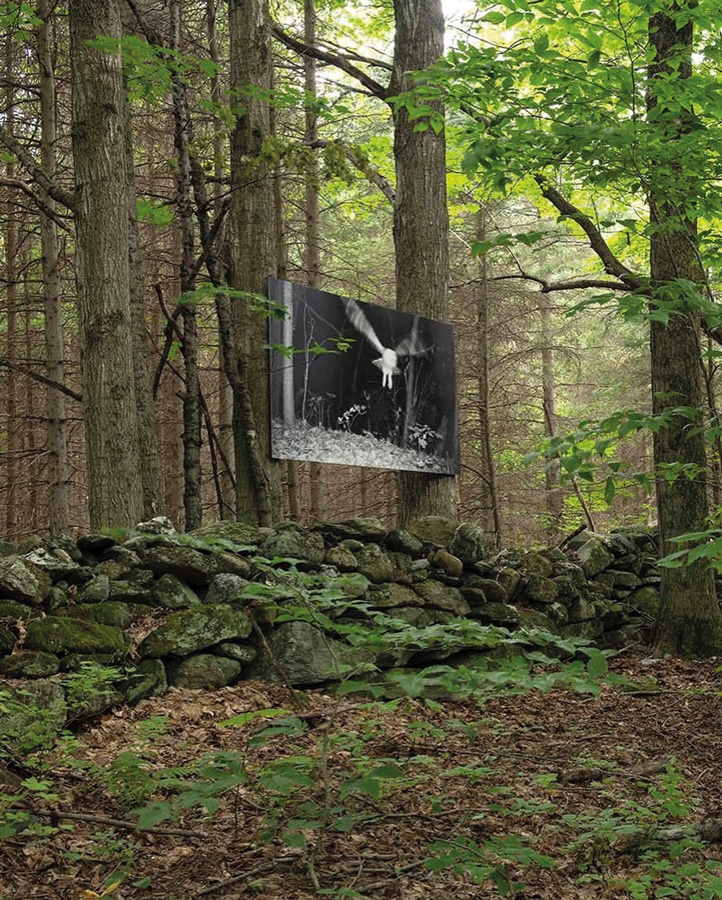 Vue de l’exposition Nightlife au mont Pinacle d’Éliane Excoffier (2022) présentée par Adélard à la Fiducie foncière du mont Pinacle, Frelighsburg. Courtoisie : Adélard