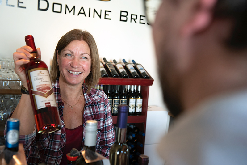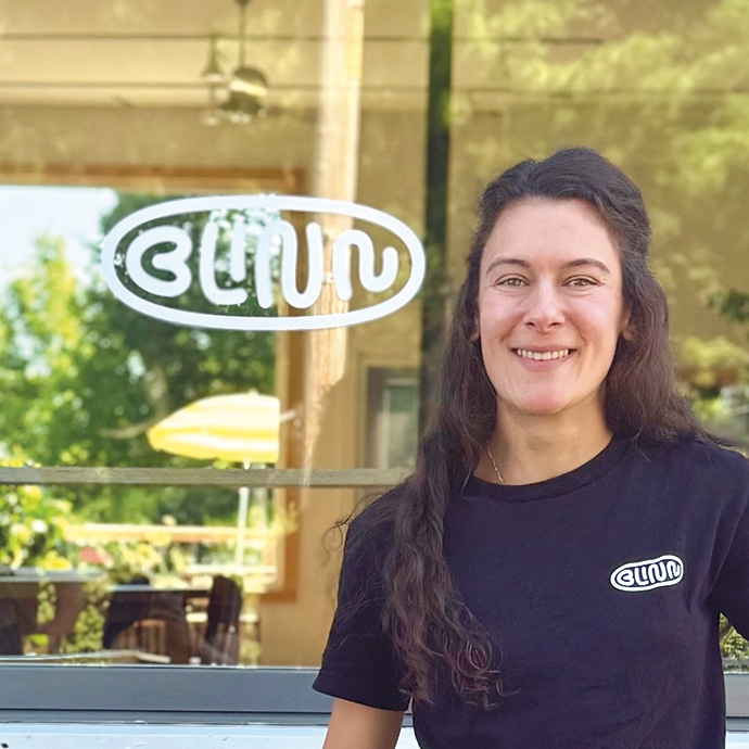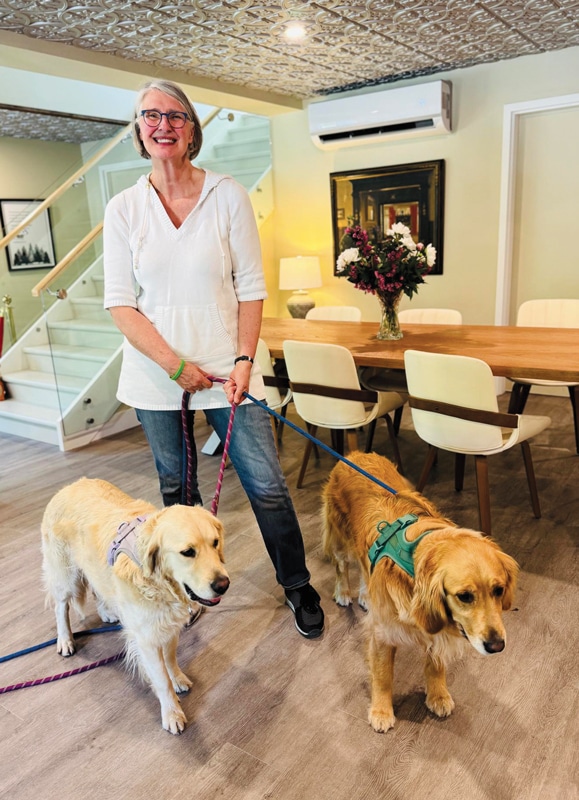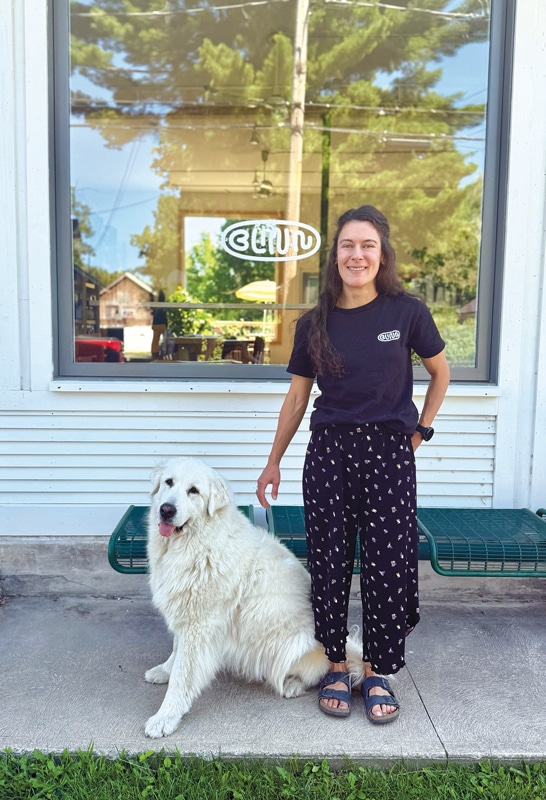La propriétaire du café Blinn, Julia Garneau, accompagnée de son chien Gisèle. Photo Marilyn Armand