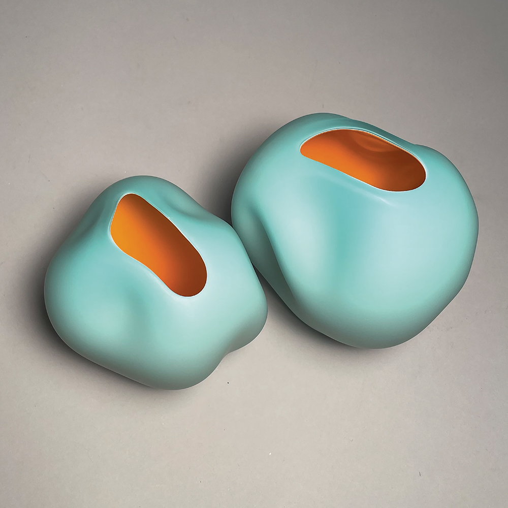 Maryse Chartrand, vases bicolores, verre soufflé, 2023