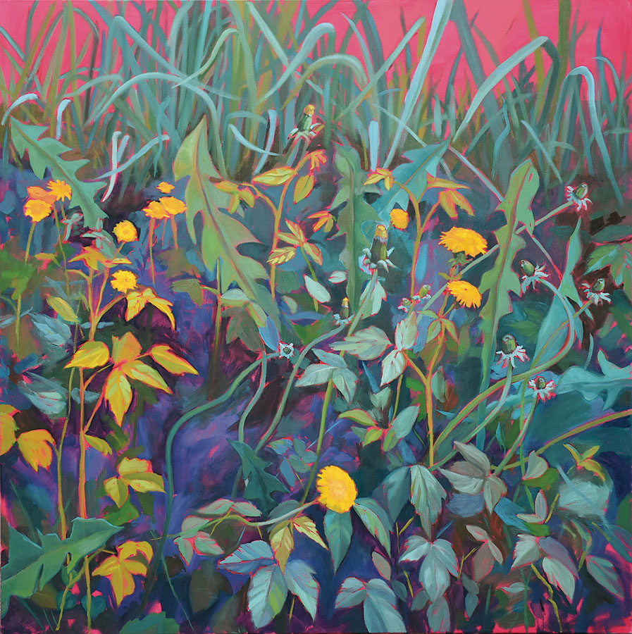 Crystel Pereira, Touching Grass, 2023, huile sur toile, 48 x 48 po.