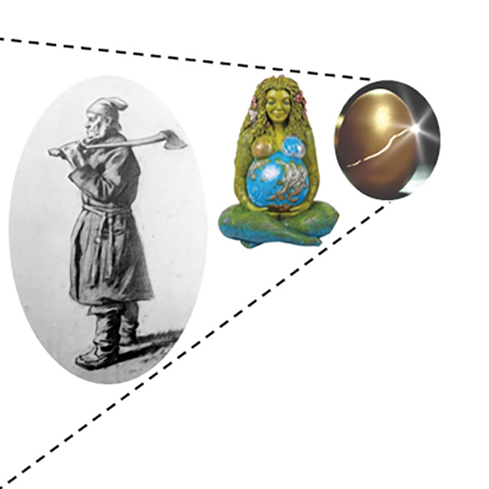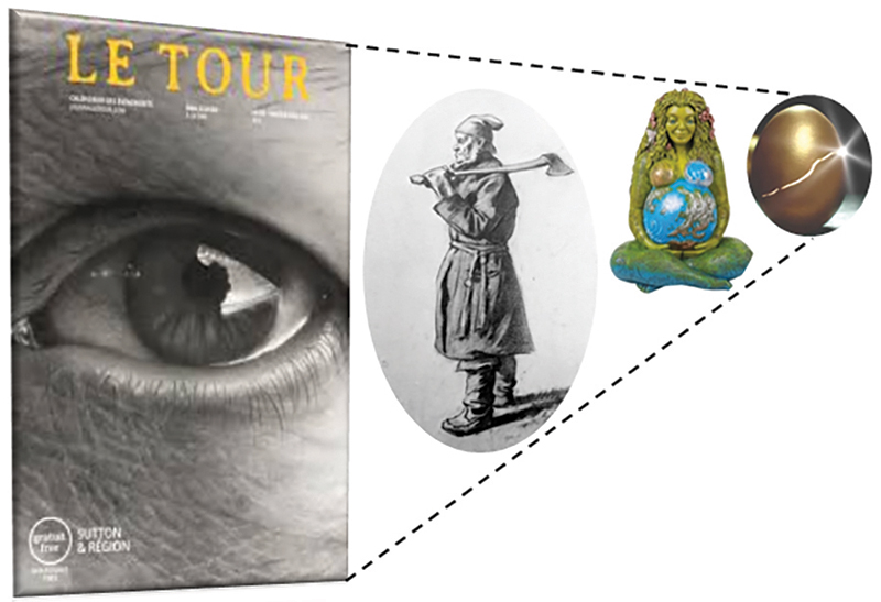 De l’œil d’Ewa Scheer à l’œuf cosmique, en passant par « Le Bûcheron » de Marc-Aurèle de Foy Suzor-Coté et « The Millennial Gaia » d’Oberon Zell. Montage de Daniel Laguitton.