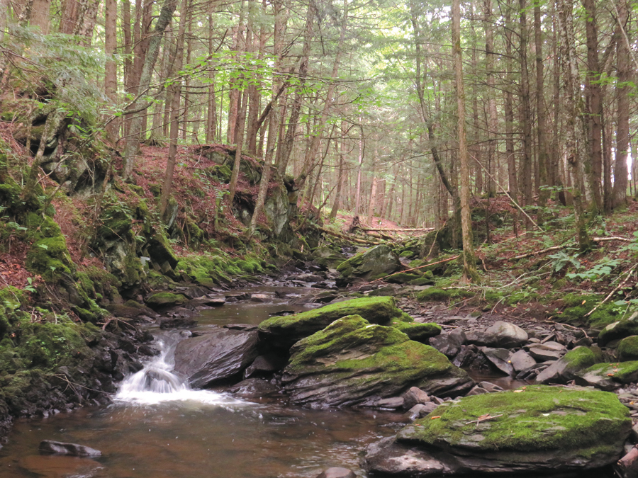 Les ruisseaux forestiers constituent l’habitat de nombreuses espèces, dont la vulnérable salamandre pourpre du Nord. Photo : OBVBM