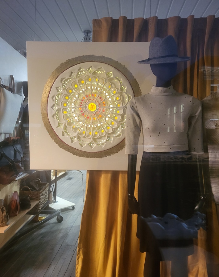 De novembre à février, il a fait du bien de voir les tableaux lumineux et les lampes de Miryam dans la vitrine de la boutique Urbaine des Champs à Sutton. Pour voir ses œuvres ce printemps, il vous faudra visiter son atelier Krysalide. Vous pouvez communiquer avec elle au 450 204-1061 ou par l’entremise de sa page FB ou de son compte Instagram AtelierKrysalide.